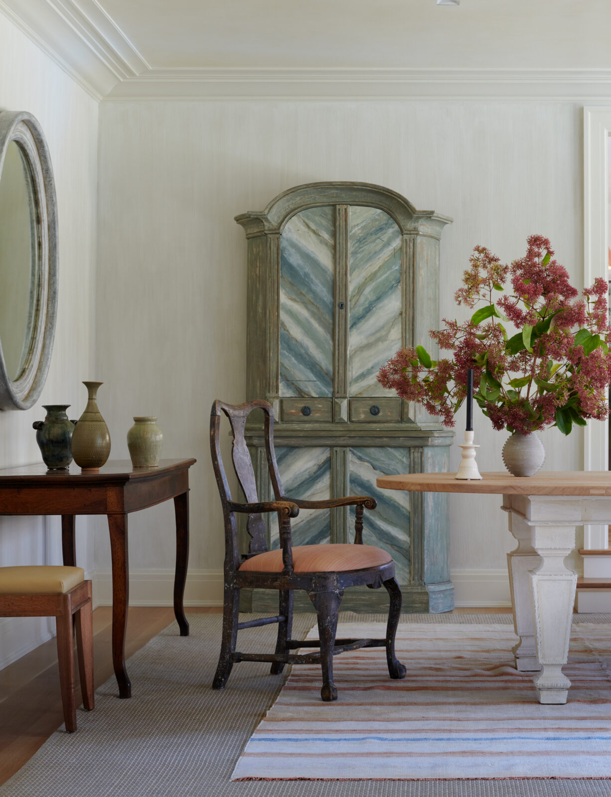 Originally built in the 1970s, this house lacked the historic character of the neighborhood in which it resides. Our task was a complete renovation that would both configure the house for our client’s needs as well as give it the historic details it lacked. From mantels to mouldings, we reworked every detail of the house until it reflected its context. Lime plaster and stenciling brought life back to the walls while soft hues and patterns gave a sense of lived-in luxury to each room.