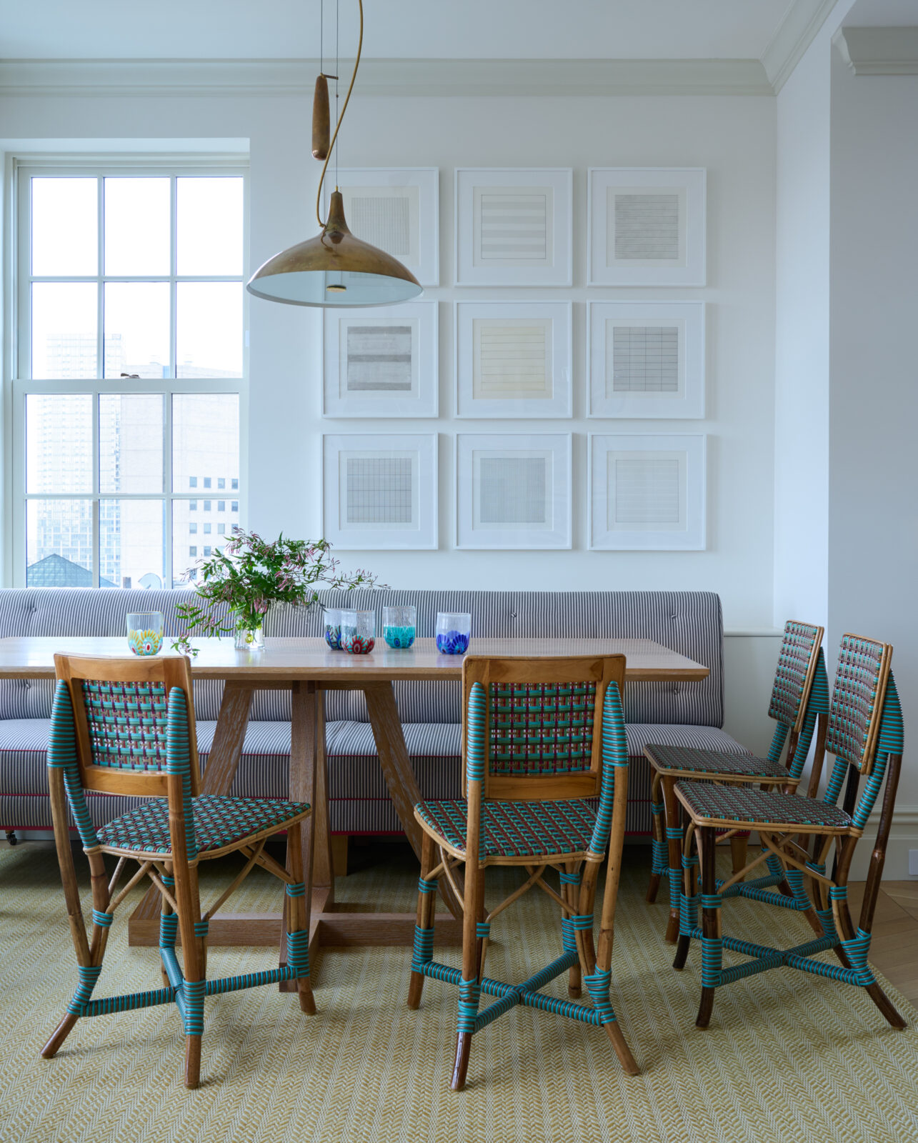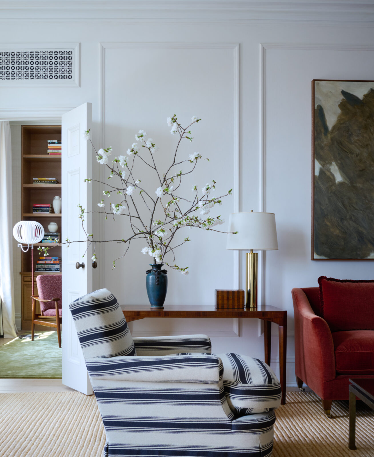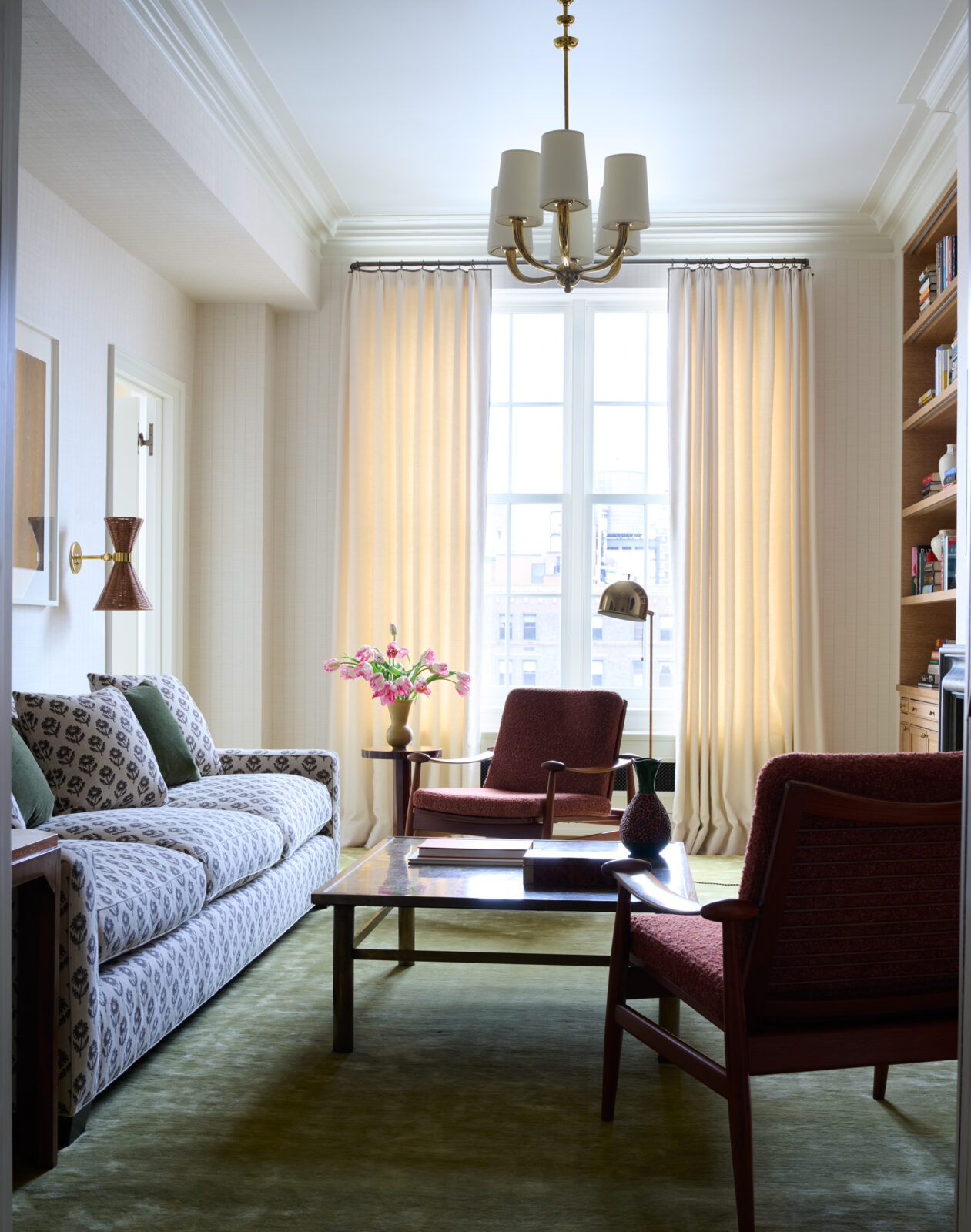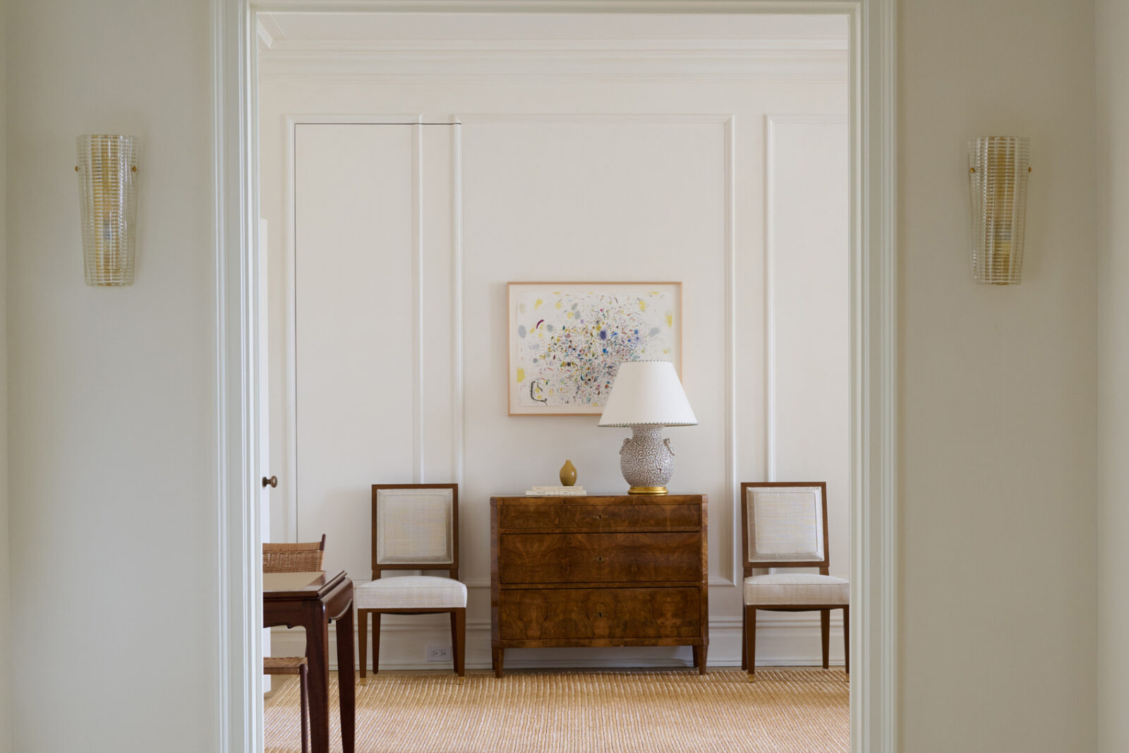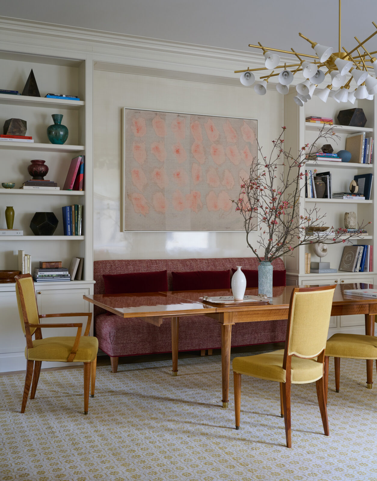 This apartment in a storied Rosario Candela building on Park Avenue was heavily inspired by Art Deco design. Our client provided us with the freedom to curate a collection of French, Swedish, and Italian pieces from the period, enveloped in a color palette rich in jewel tones. The millwork in the dining room is fashioned after a private eating club in Paris while subtle decorative finishes on the walls – from plaster to lacquer in creams and whites – were used throughout to allow the furniture pieces to take center stage. Color was applied subtly through textiles and luxurious carpets – the green silk in the library is a particular favorite.